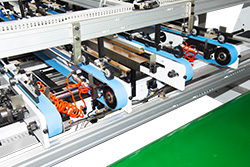 主機(jī)輸紙部采用四條輸紙皮帶墻板均可調(diào)節(jié)移動(dòng);壓紙裝置采用壓力可調(diào)絕緣質(zhì)膠輪組合接紙、送紙,異形紙張還可根據(jù)形狀前后移動(dòng)位置,保障接紙同步穩(wěn)定、送紙不打滑。