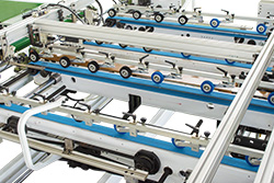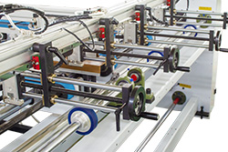主機(jī)輸紙部采用四條輸紙皮帶墻板均可調(diào)節(jié)移動(dòng);壓紙裝置采用壓力可調(diào)絕緣質(zhì)膠輪組合接紙、送紙,異形紙張還可根據(jù)形狀前后移動(dòng)位置,保證接紙同步穩(wěn)定、送紙不打滑;單張到位等紙防劃痕停紙電控功能,可避免兩片紙張因走紙先后/長(zhǎng)短不一造成的到位等紙磨花現(xiàn)象。