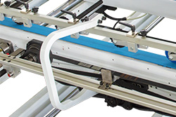 側(cè)推紙定位部?jī)蓚?cè)拍紙采用兩套伺服系統(tǒng)驅(qū)動(dòng)四組精密滾珠絲杠側(cè)推定位,可根據(jù)紙張邊壓強(qiáng)度高低調(diào)整側(cè)推運(yùn)動(dòng)周期時(shí)間快慢,確保紙張糊口對(duì)位精準(zhǔn)、穩(wěn)定、不傷紙邊。